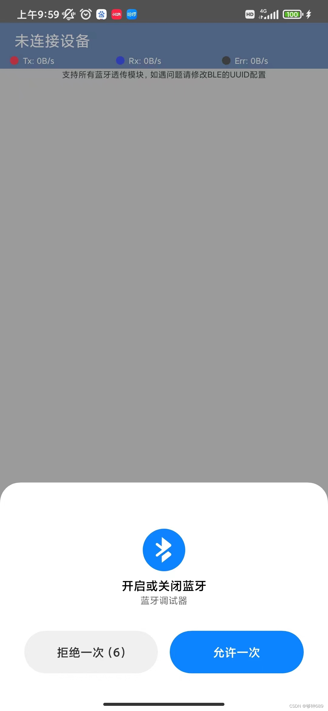 蓝牙模块要先进行AT配置(具体可以参照其他博主的教程)提示灯闪烁 说明蓝牙待连接: