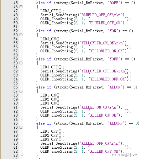 LED灯的初始化代码和点亮函数:
