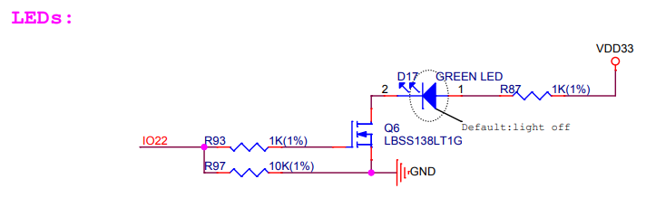 有个 IO 口为 22 的绿色 LED 灯