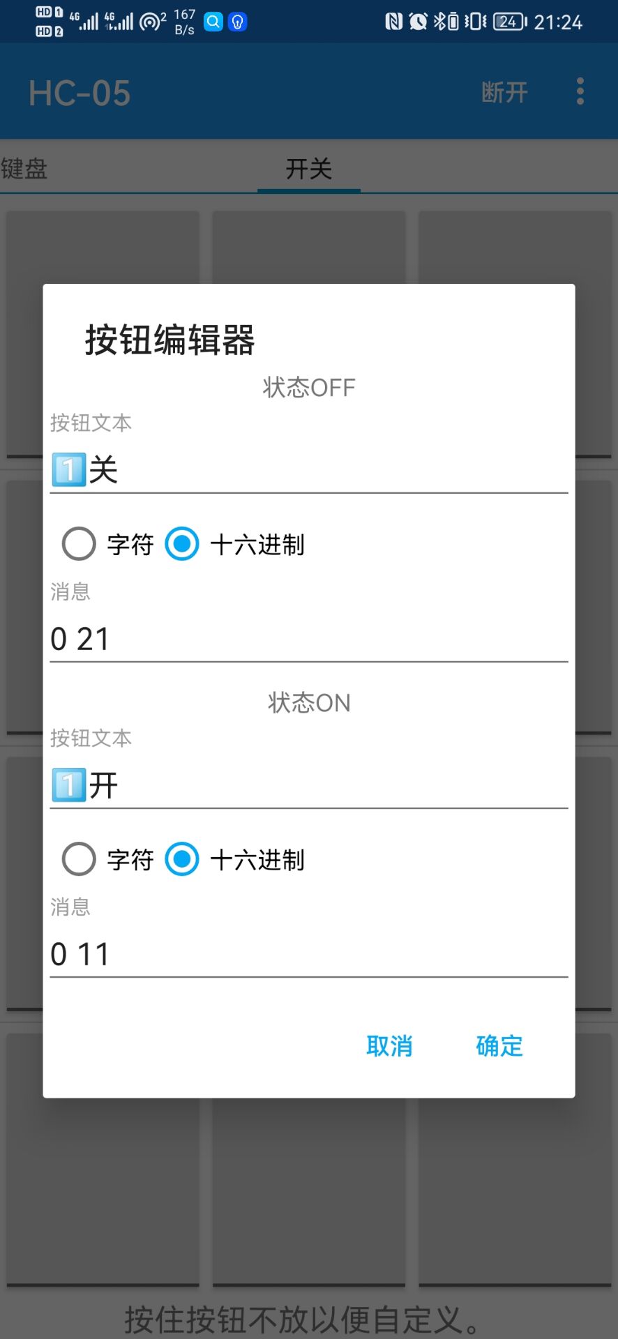 2、手机上打开SPP蓝牙串口app,设置按键: