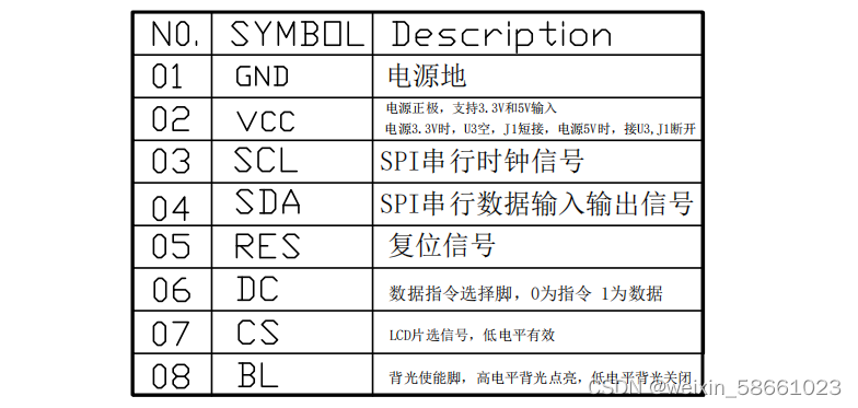 | RGB_TFT | GND | VCC | SCL | SDA | RES | DC | CS | BL |