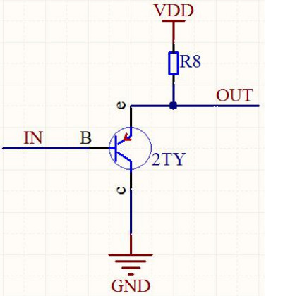 - 当给这个单元电路输入低电平时,N-MOS 管导通,输出即为低电平。