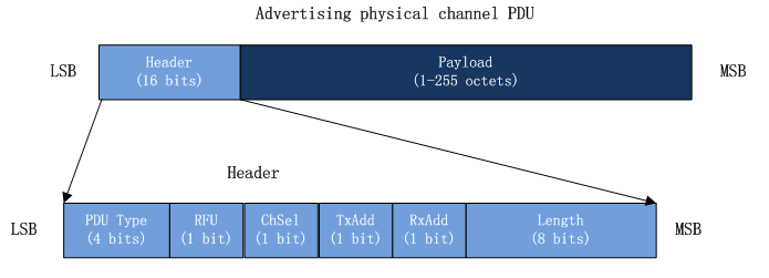 广播的 PDU 组成主要由 Header 和 Payload 构成:
