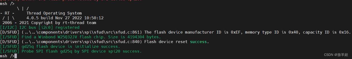 以上就是潇洒小兔子最近收集整理的关于rt-thread通过spi连接W25Q32后无法读取ID的全部内容,更多相关rt-thread通过spi连接W25Q32后无法读取ID内容请搜索靠谱客的其他文章。