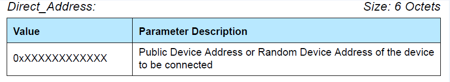 2.可连接的定向广播(Connectable Directed Event Type)。定向广播类型是为了尽可能快的建立连接。这种报文包含两个地址:广播者的地址和发起者的地址。发起者收到发给自己的定向广播报文之后,可以立即发送连接请求作为回应。