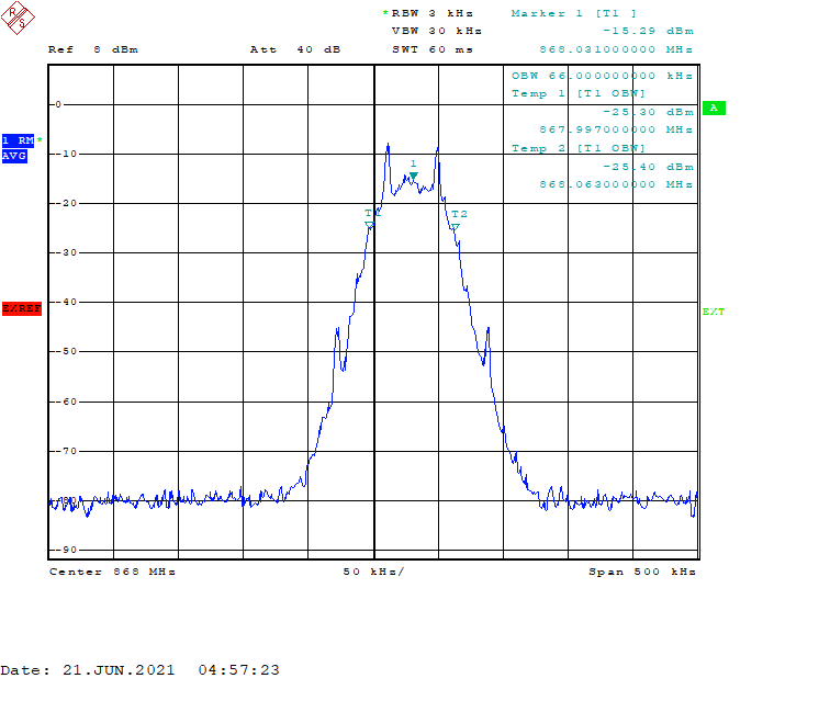 - 当使用00001111测试序列时,平均频率偏差应符合450 kHz ≤∆f1avg≤550 kHz的范围