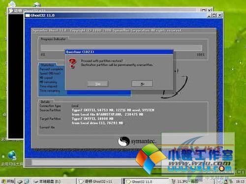 前面都选择好之后,会弹出一个对话框问你是否要将指定的GHO镜像恢复到电脑的C盘去,点击yes就可以。