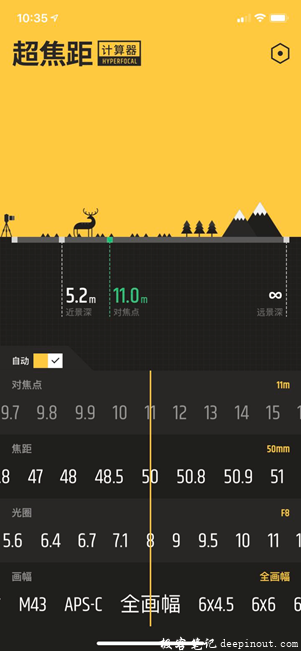 当你对焦在这个超焦距上时,能够得到在这个光圈和焦距组合下的最大景深范围
