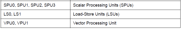 最高效的运算是尽可能在每个cycle上进行:4个SPUs+2个LSUs+2个VPUs的运算。