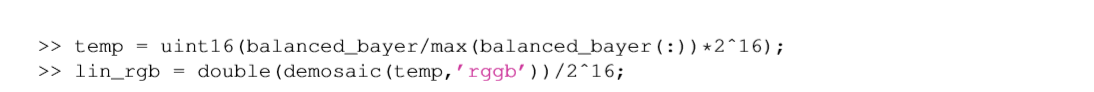 lin_rgb=double(demosaic(temp,'rggb'))/2^16;