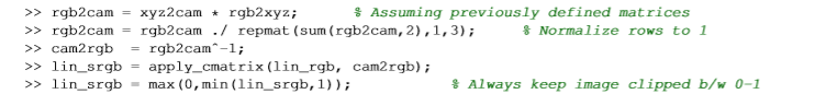 sRGB2Cam = sRGB2Cam./ repmat(sum(sRGB2Cam,2),1,3); % normalize each rows of sRGB2Cam to 1