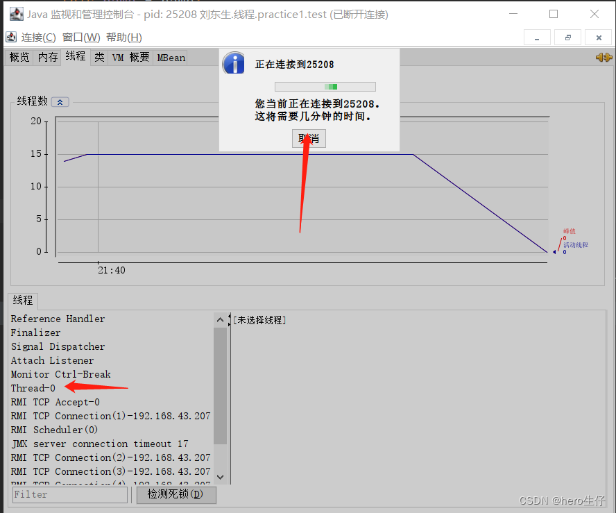 需求:子线程在每过一秒后才输出“喵喵已经吃了第几条猫条+Thread-0”语句,输出20次就退出子线程。主线程就输出“主线程在进行中+main”语句10次退出主线程。
