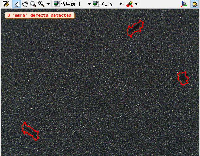 disp_message (WindowHandle, NDefects + ' 'mura' defects detected', 'window', 12, 12, 'red', 'true')