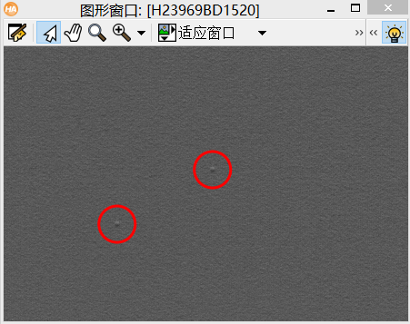 关键点:该例程的关键就是使用两个低通滤波器,进行相减后构造了一个带阻滤波器来提取缺陷分量。通过带阻滤波后获得的频率成分对背景中的纹理要有明显的抑制,并且突出缺陷成分,在频域处理完成转会空间域之后,又用了一个能扩大亮点区域的函数:gray_range_rect 辅助后面的二值化,最终完成了缺陷的检测,这个函数可以说是点睛之笔。