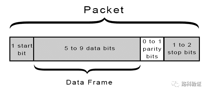 UART传输的数据被组织成数据包,每个数据包包含1个起始位、5到9个数据位(取决于UART)、1个可选奇偶校验位,以及1个或2个停止位: