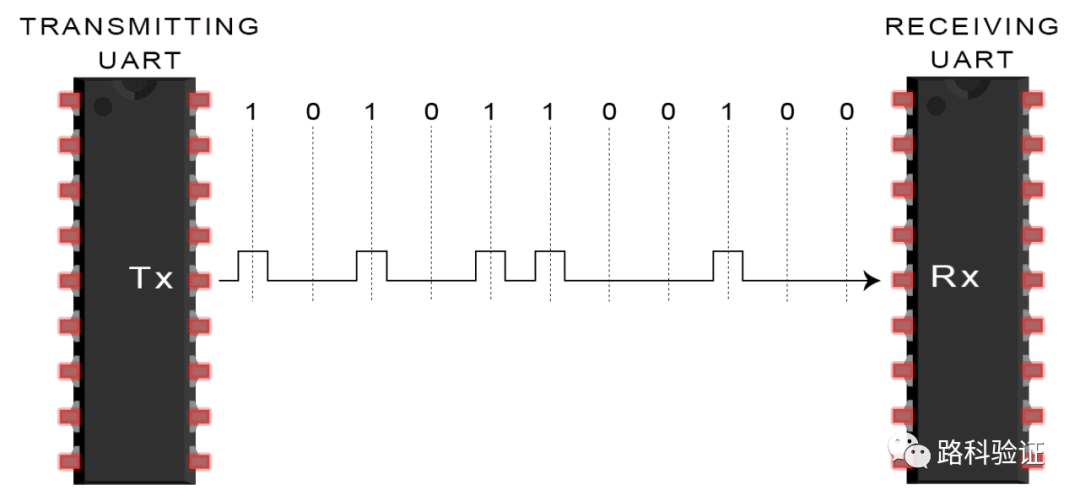 UART异步传输数据意味着没有时钟信号使发送UART的输出位与接收UART采样位同步。发送UART取代了时钟信号,将开始位和停止位添加到正在传输的数据包中。这些位定义了数据包的开始和结束,因此接收UART知道何时开始读取这些位。