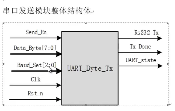 串口发送模块主要包含两个组件:①发送波特率生成模块,②数据发送模块。