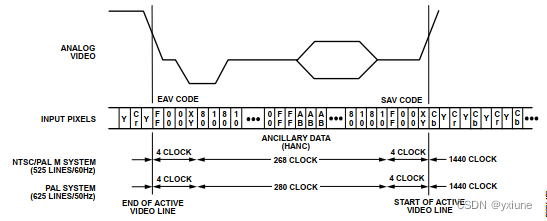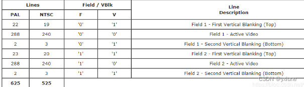 行数据区别:其中PAL消隐区为288个数据;NTSC消隐区为268个数据;