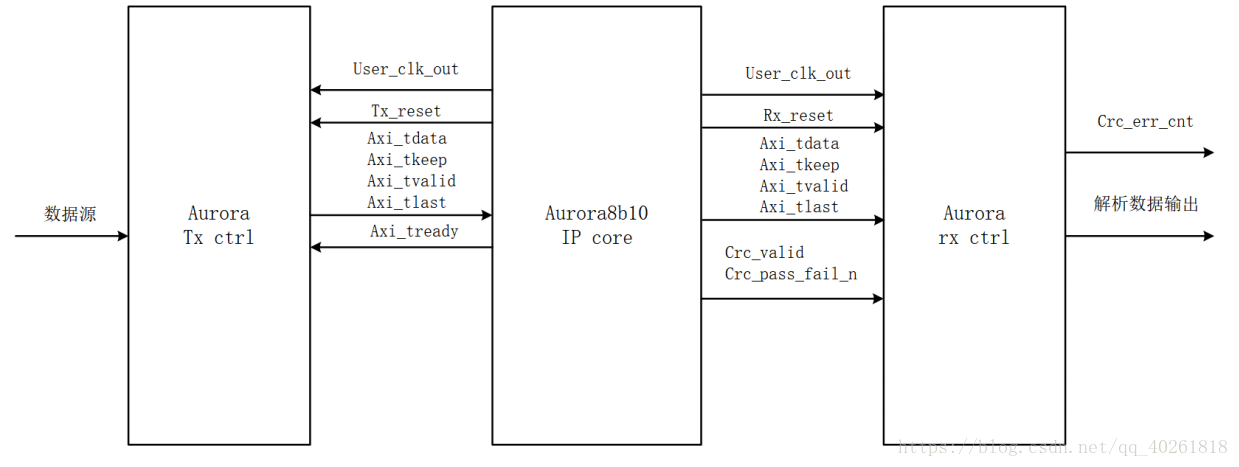 tx_ctrl和rx_ctrl模块是用户设计模块。tx_ctrl产生