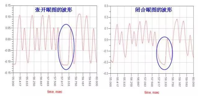 基于上文那个张开和闭合的眼图,我们来对比下它们接收端的波形: