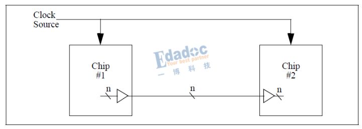 时钟转发的优点是用于在芯片#1上启动数据的高速时钟可用于芯片#2作为捕获数据的参考。这样之前通过时钟分配网络驱动两个芯片的延迟的变化在时序分析中就不需要考虑了,只有时钟路径和数据位之间的延迟变化是相关的。 虽然制程,电压和温度导致的这些路径之间的变化在一定程度上相互影响,但接口的时序分析需要的余量较少,因此建立和保持时间更容易满足。