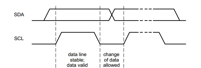 SDA线上的数据必须在时钟的高电平周期保持稳定。数据线的高或低电平状态只有在SCL线的时钟信号是低电平时才能改变。