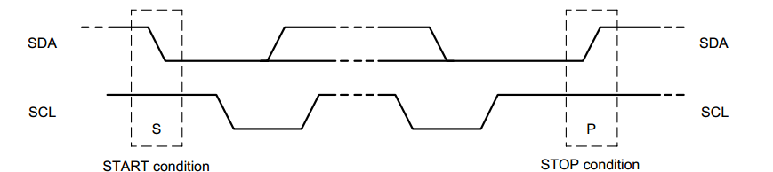 停止条件:在SCL为高电平期间,SDA由低电平跳变为高电平,此情况表示停止条件。