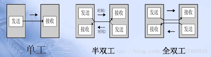 分为3种:1、单向(单工)配置,只允许数据向一个方向传送。2、半双向(半双工)配置,允许数据向两个方向中的任一方向传送,但每次只能有一个站点在发送。3、全双向(全双工)配置,允许同时双向传送数据,因此,他要求两端的通信设备都具有完整和独立的发送和接收的能力。如下图所示