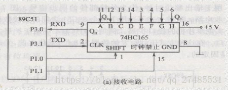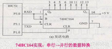 基本很少用到方式0,一般都是用到方式0是通过串口扩展8位并行I/O输出口,如下图所示