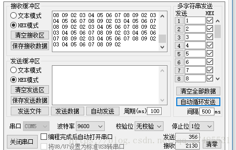 我用串口助手循环发送从1-8,单片机会返回2-9,实现现象如下: