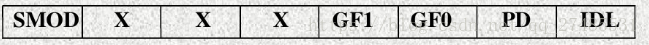 电源控制位寄存器PCON中只有SMOD位与串口工作有关,如下图所示