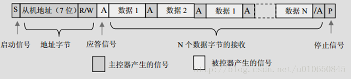 - 主机发送非应答信号后,再发送一个停止信号,释放总线结束通信。