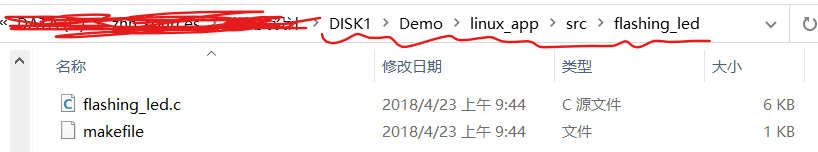找到led应用程序代码,代码在如下目录中: