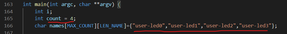 【1】指定led灯的数量count=4 ;并且指定4个led灯的变量名(系统根据4个led灯的变量名去识别对应的led灯硬件)