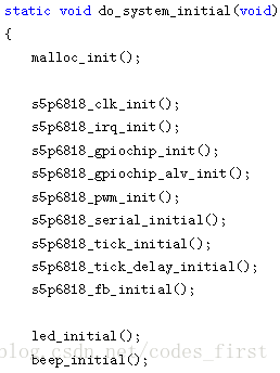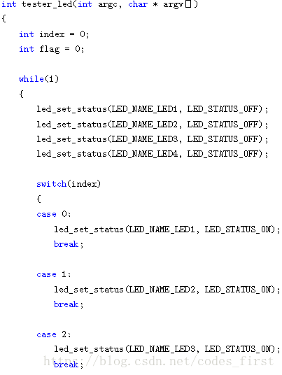 首先我们从main 函数开始,它有两个函数,do_system_initial 和led_initial。do_system_initial 函数首先会调用led_initial 函数初始化led,再通过tester_led 函数控制相应LED 的亮与灭。