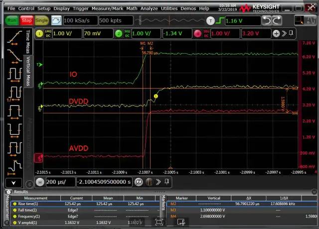 由下图可以看出,AVDD上电比IO还快,不符合上电时序的要求,就可能造成许多莫名其妙的bug。