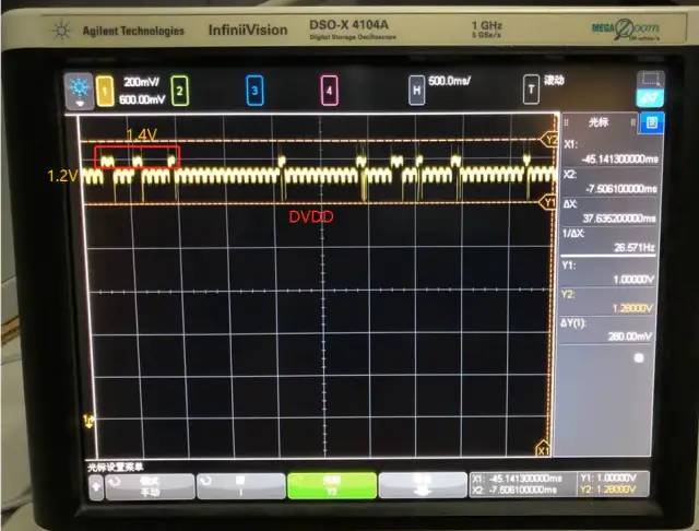 可以看到,在使用小尺寸1632x1224(200w)输出时,DVDD在1.2V到1.4V直接不停的跳,导致供电电压不稳定,