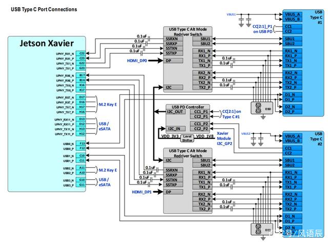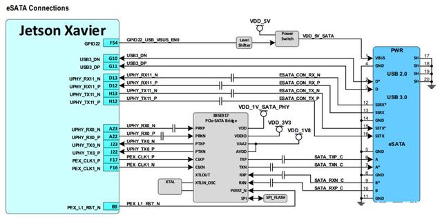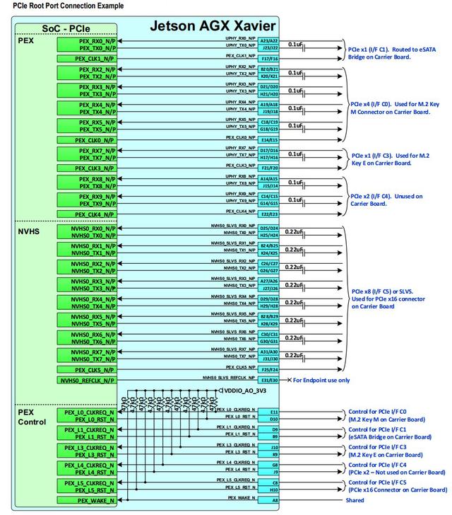 Xavier支持PCIE 4.0,共有16 lanes, 其中, NVMe x4, eSATA x1, M.2 Key E x1, PCIE Slot x16接口但只能x8模式。