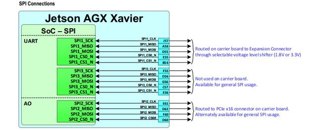 Xavier 引出3路SPI,支持最大65MHz的频率数据传输。
