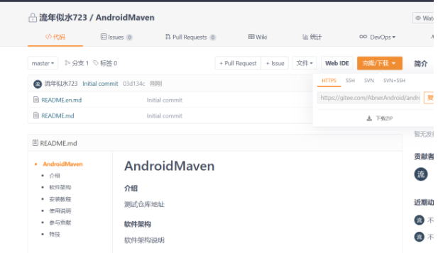 以上,我们只能自己本地使用,或者把aar复制给别人使用,一旦更改频率很高,每次的更换是很麻烦了,能不能让他人使用的时候,如果更改了,也只需更改版本号就可以了呢,答案必须可以,大家可以选择任何一个代码托管平台进行实现,这里我用gitee也就是码云来作为例子演示,说到这里,为了保证源码的绝对安全,其实一般在公司都有自己的私服,上传至私服即可。