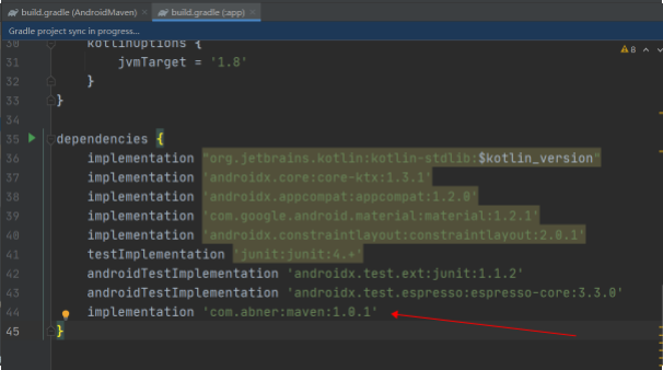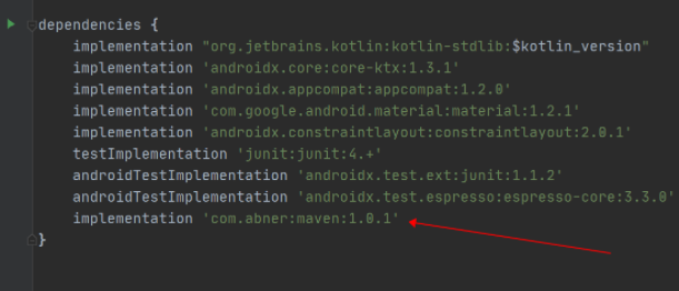 第二步,在需要的module里进行引入,这样以后aar有更改,我们只需更改版本号即可: