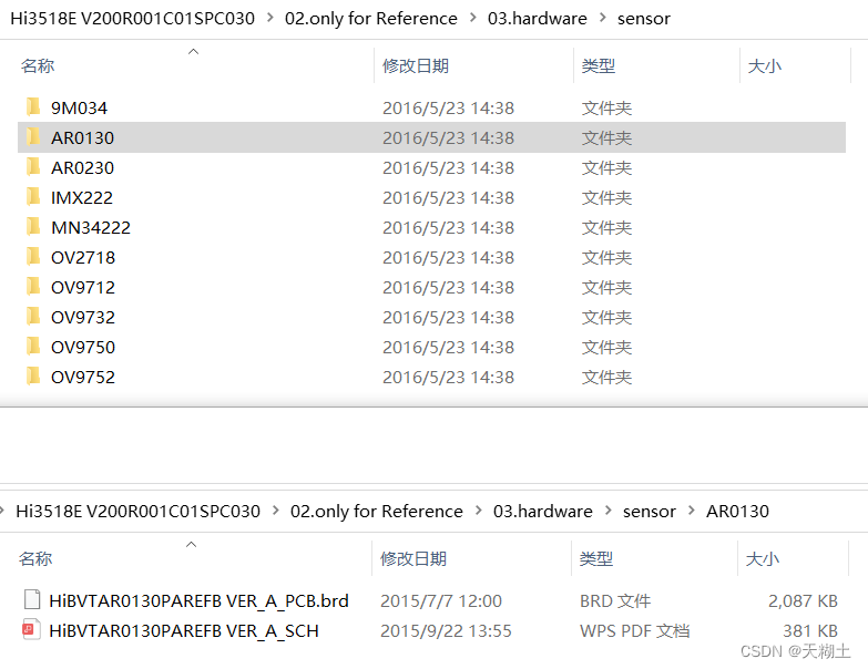 (3)Hi3518E V200R001C01SPC030 2.only for Reference 3.hardwaresensor目录下的文件夹是海思调试好的sensor型号。