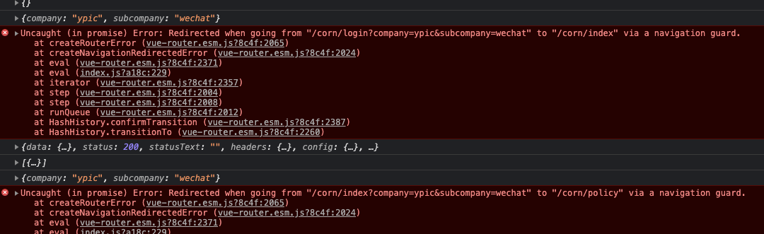 这样写每个页面是都加上需要的参数的了,但是跳转的时候会报错 Redircted when going from "" to "" via a navigation guard