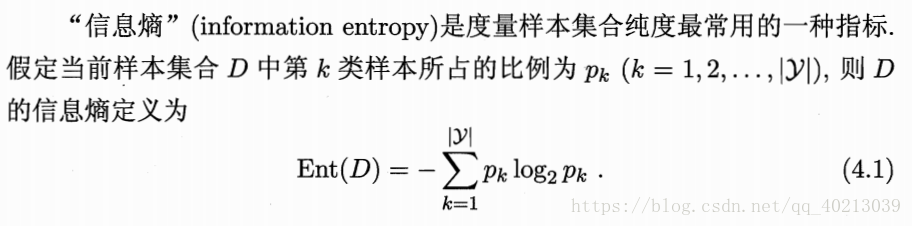 纯度大小可以由“信息熵”或“Gini值”来衡量,两者的定义分别如下: