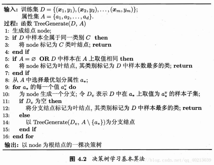 综上所述,一棵决策树的生成伪代码如下: