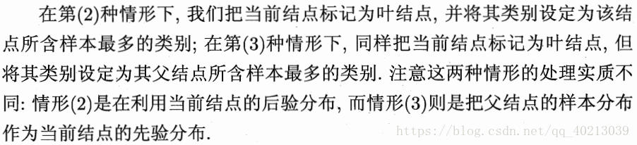 第(1)种情况下,直接将该属性划分的到的数据集作为终节点即可。