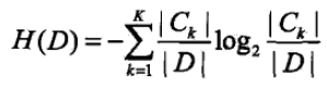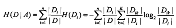 根据特征A的取值将D划分为n个子集D1,D2...Dn, D_ik为D_i与C_k的交集。(为了容易理解,这里可以先考虑二分类问题,即K=2)