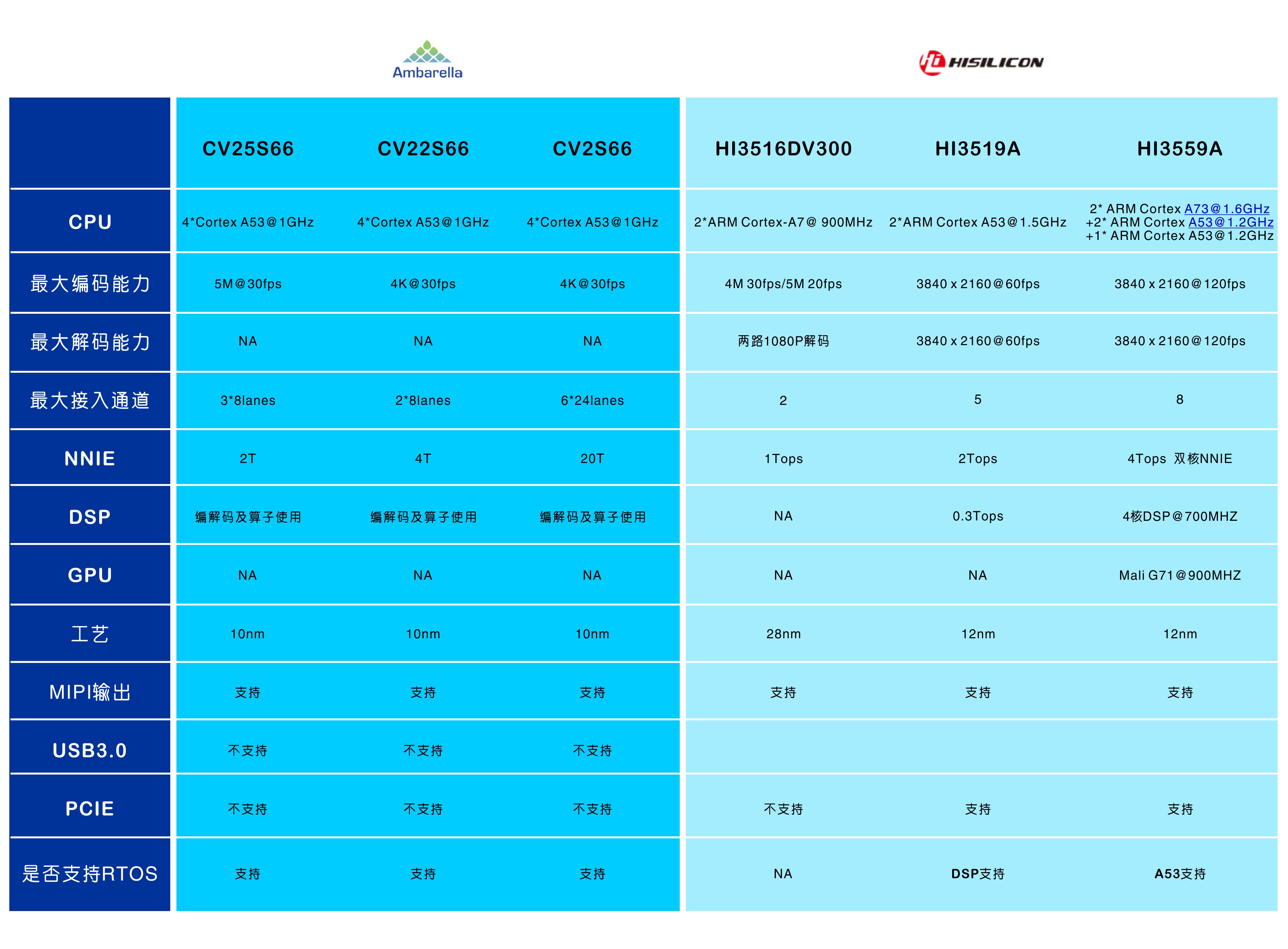安霸Ambarella_海思Hisilicon_AI芯片参数对比