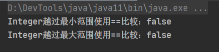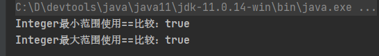 System.out.println("Integer越过最小范围使用==比较:" + (a==b));