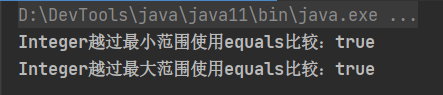 System.out.println("Integer越过最大范围使用equals比较:" + (c.equals(d)));